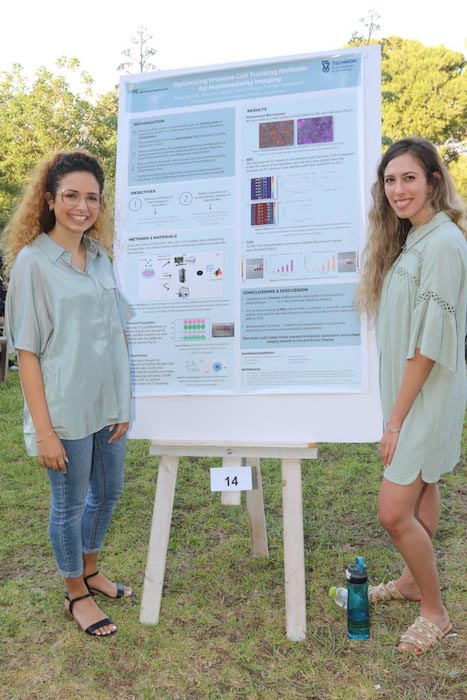 Sivan Barash and Shachar Zigron took first place in the student project competition, presenting a novel way of labelling macrophage cells that makes them detectable by MRI.