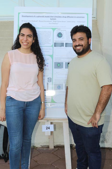 Orel Shahadi and Or Levy, coming in third, developed a 3D model that simulates drug penetration into solid tumors, facilitating development of new drugs and drug combinations to treat cancer. Their innovative model features an inner cluster of cells engineered to display fluorescence, surrounded by an outer layer of cells. Change in the cells’ fluorescence served as an indicator, providing a way to measure drug penetration into the tumor with a high level of precision.