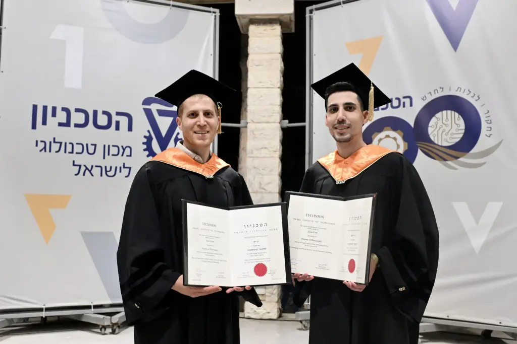 The leading faculty this year in the number of graduates is the Viterbi Faculty of Electrical and Computer Engineering, with 31 doctoral graduates, followed by the Ruth and Bruce Rappaport Faculty of Medicine (22) and the Faculty of Civil and Environmental Engineering (18). Among the doctoral graduates were two pairs of siblings who graduated together: twins Dr. Manar and Dr. Rawan Halabi, who both earned their doctorates with highest honors from the Wolfson Faculty of Chemical Engineering, and brothers Dr. Lior and Dr. Chen Zano, who both received their doctorates from the Viterbi Faculty of Electrical and Computer Engineering.